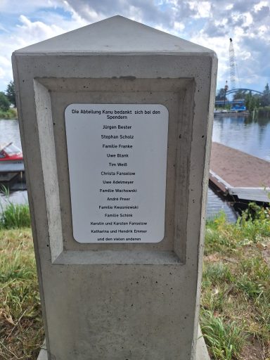 nun ist es geschafft, der neue Steg wurde am 05.03.2025 geliefert und eingebaut. Die neue Saison kann gleich mit super Bedingungen , was das Einsteigen und Aussteigen mit den Booten betrifft, beginnen. Den gesamten Verein hat es gefreut und die Kinder der Abteilung Kanu haben den Steg gleich erobert. Somit ist für die Kanuten ein Traum in Erfüllung gegeangen und die über mehrere Jahre andauernde Arbeit an dem Projekt kann mit den Erstellen der Verwendungsnachweise und sonstiger Nachbereitung endlich abgeschlossen werden.