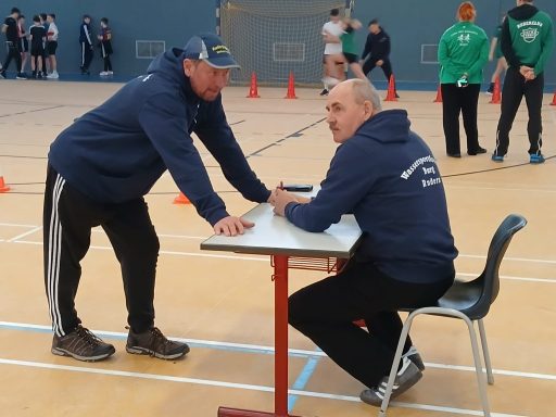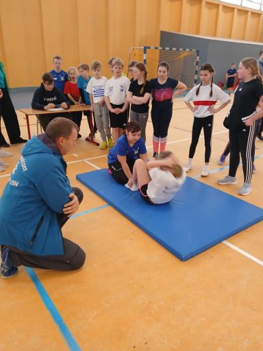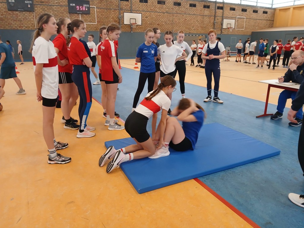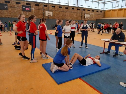 Einige Trainer und Übungsleiter übernahmen die Rolle der Kampfrichter an den verschiedenen Stationen. Für die Station Aufrichten aus der Rückenlage stellten sich Marco Fischer und Dirk Adam aus unseren Reihen zur Verfügung. Sie überwachten die Ausführung der Übung und notierten die Ergebnisse. Isabell Hertrich, Jana Müller und Paul Klaus Schmidt standen den Aktiven während des gesamten Wettkampfs zur Seite und gaben wertvolle Tipps zur korrekten Ausführung.